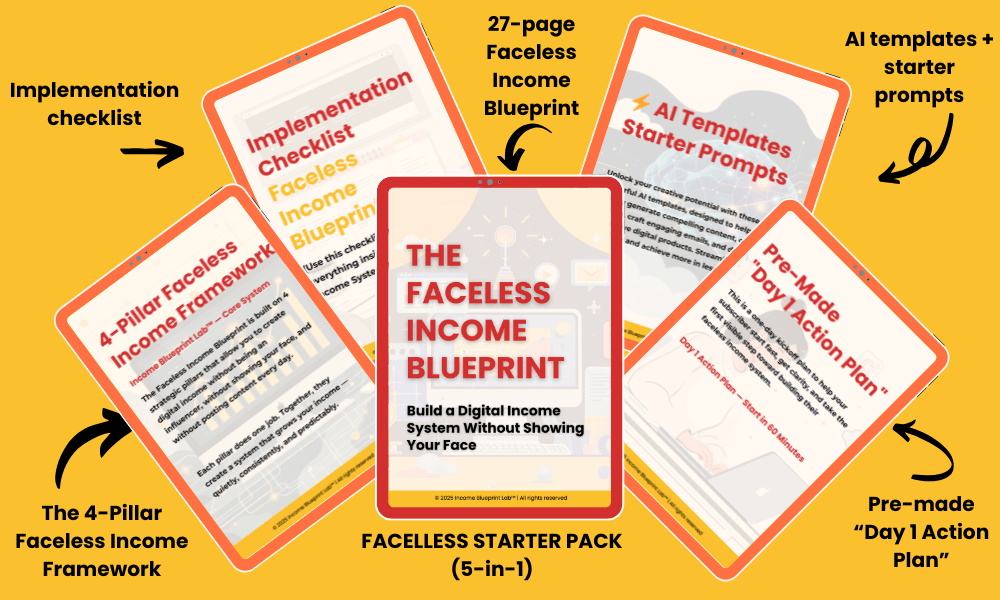 Get the complete 5-file starter system to launch your faceless income path — download instantly or pay what you want (0–$9).